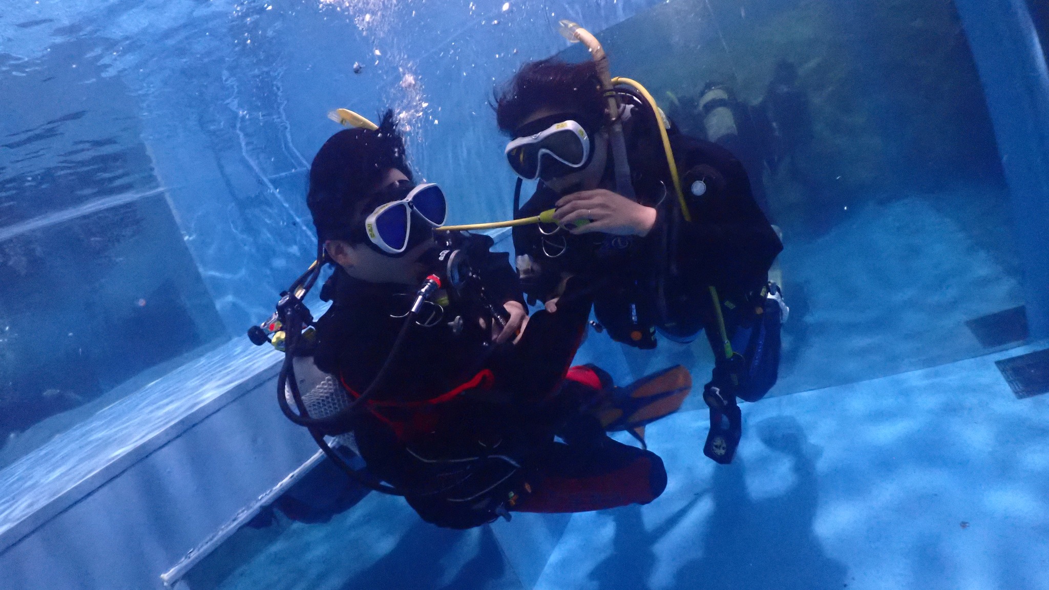 2025.11.12(水)▶ ご夫婦でダイビングライセンス取得!【ココモ店内プール】 ダイビングレポート 0 こんにちは!DORYです! 本日は、ライセンス取得コースにご参加中のご夫婦に、 ココモ店内プールにてプール実習を受講いただきました! ホバーリングもバッチリキマりました(^O^) 本日も1日ありがとうございました! 海洋実習もお楽しみに!(^^)!