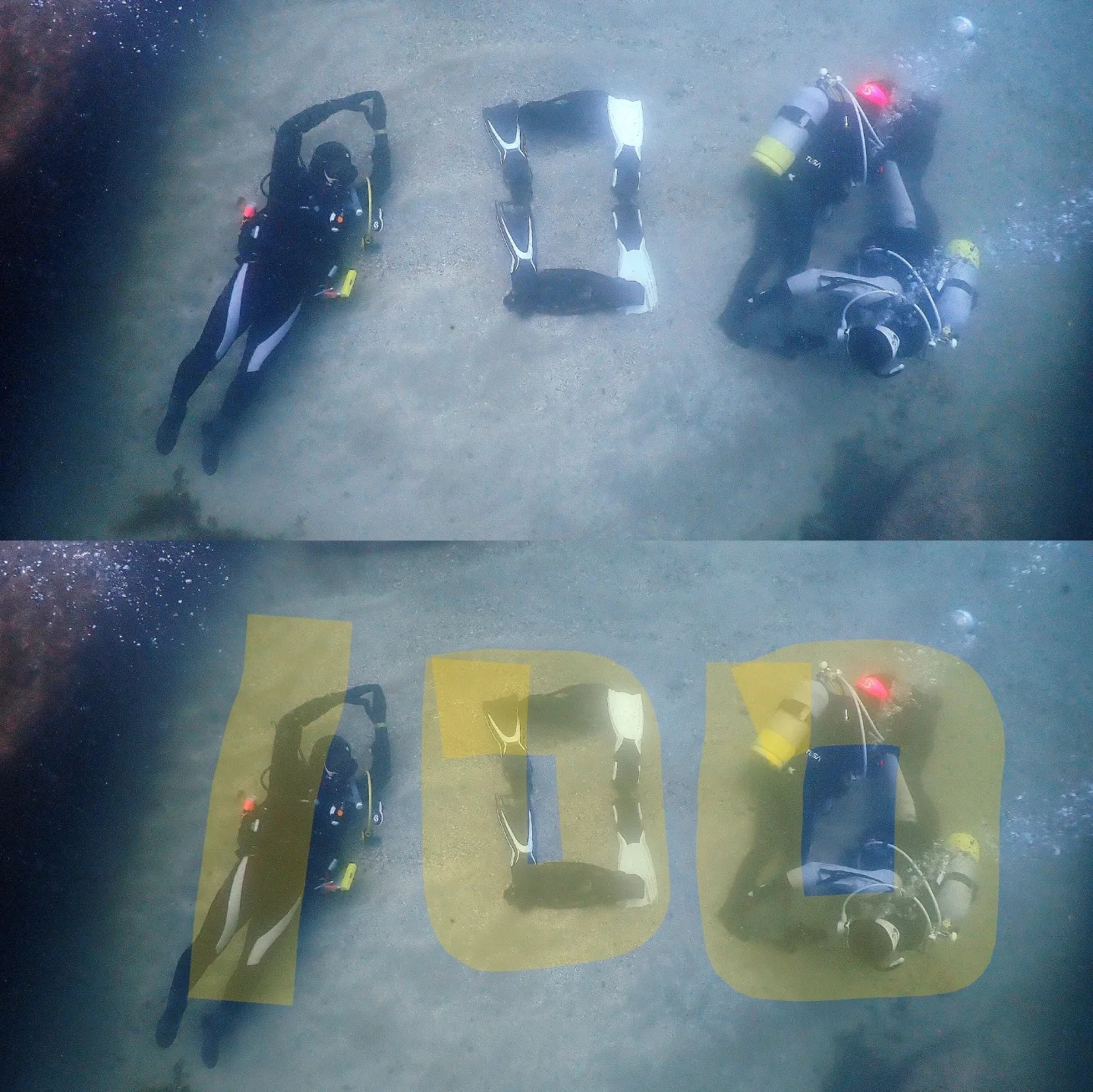 ダイバー文字で「100」
