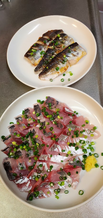 アジはお刺身に、