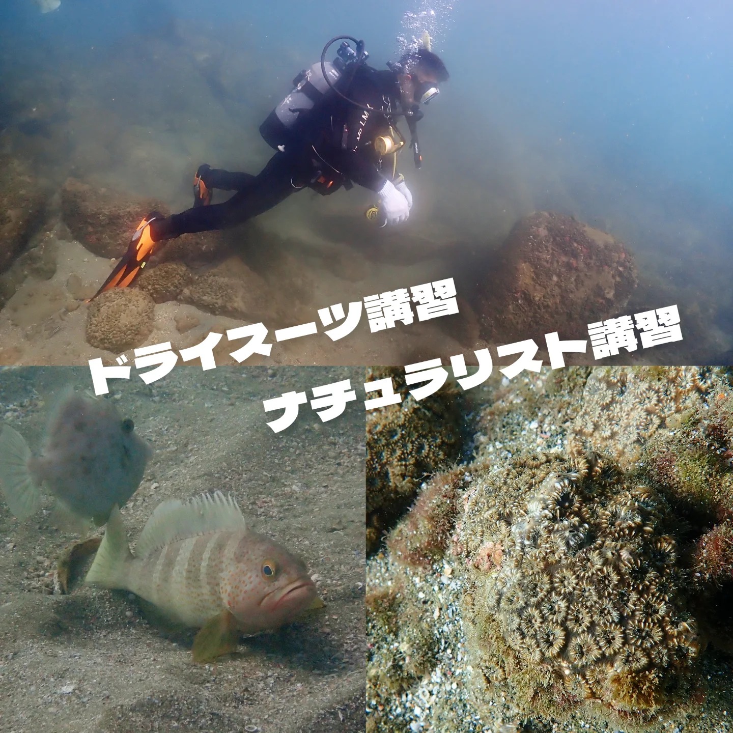 ↓レスキューダイバーコースや、アドバンスコースの講習風景!